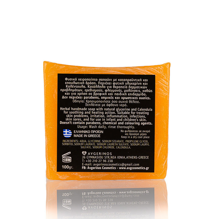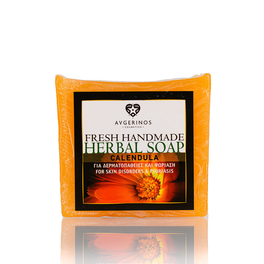 Jabón artesanal a base de hierbas con glicerina natural y caléndula para una acción calmante y cicatrizante. Adecuado para tratar problemas de la piel, irritación, inflamación, infecciones, llagas en la piel y para su uso en la piel de bebés y niños.