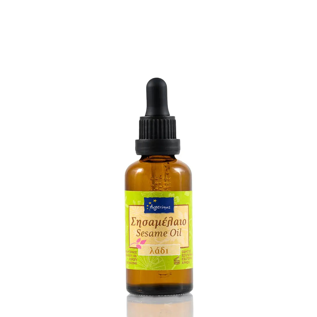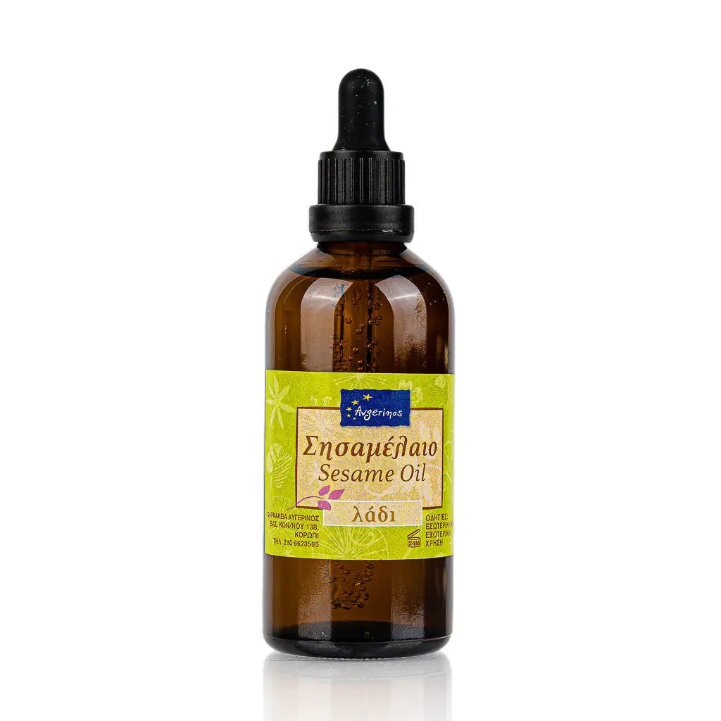 Γυάλινο Μπουκάλι με Σησαμέλαιο απο το εργαστήριο αρωματοθεραπείας του Φαρμακείου Avgerinos Pharmacy